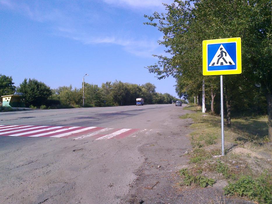 Нарешті на перехресті Криворізьке шосе – Миколаївка встановили додаткові дорожні знаки пішохідного переходу. Крім додаткових знаків відновили й розмітку на дорожньому полотні. Звичайно новенькі додаткові знаки, які встановлені безпосередньо на межі смуг руху протилежних напрямків, не гарантують зупинку всіх транспортних засобів, але додаткова увага водіїв напевно точно буде. Сподіваємось, що в майбутньому, на цьому перехресті з`явиться наземний, чи навіть підземний пішохідний перехід, але й те що вже зроблено – краще ніж зовсім нічого.