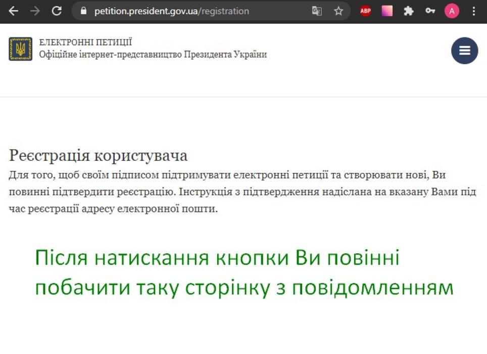 1. Переходимо на сайт інтернет-представництва Президента України: Реєстрація