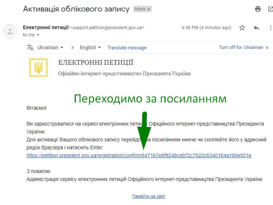 3. Переходимо за посиланням, яке знаходиться в електронному листі