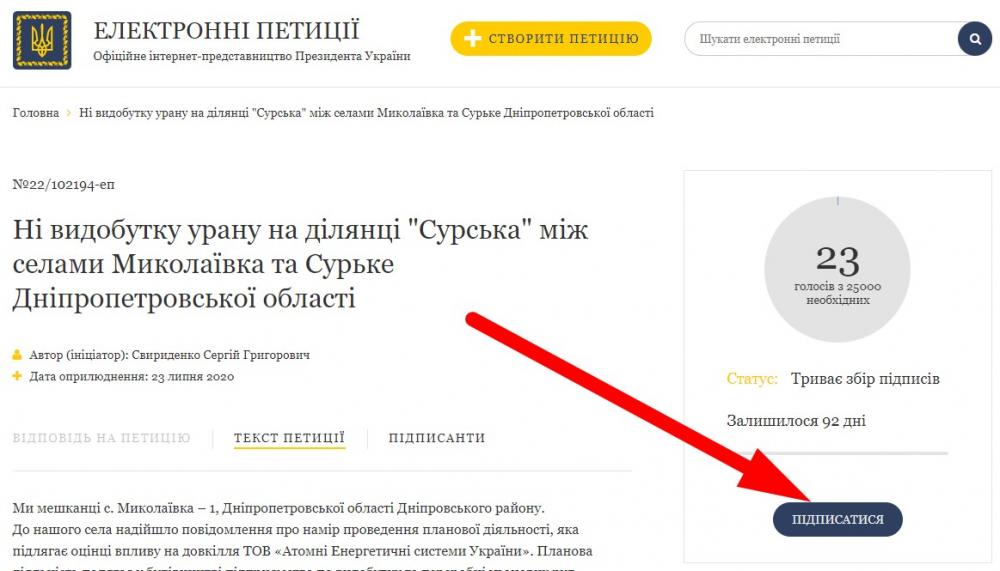 Увага! Опубліковано Петицію на сайті Президента України, щодо видобутку урану в Дніпропетровській області