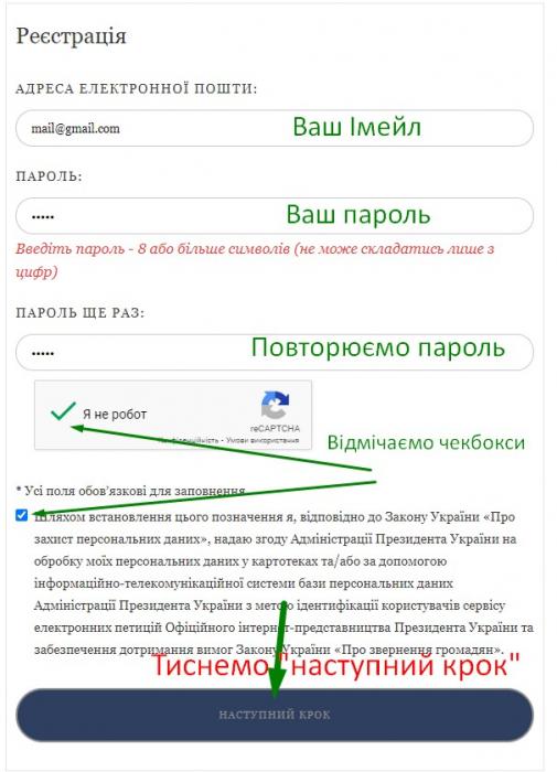 1. Переходимо на сайт інтернет-представництва Президента України: Реєстрація